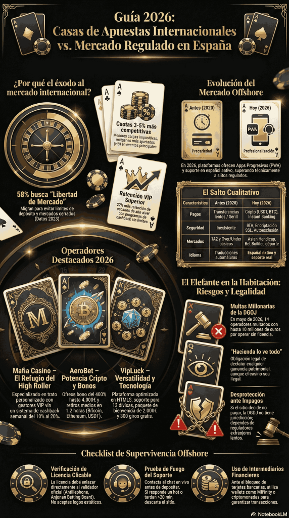 Las casas de apuestas internacionales son plataformas registradas legalmente en jurisdicciones extranjeras (como Curazao o Anjouan) que actualmente absorben el 34% del tráfico español . A diferencia de los operadores con licencia local (DGOJ), estos portales ofrecen: